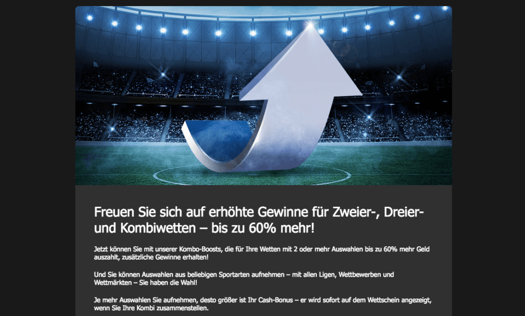 Damit der Bonus ausgezahlt werden kann, muss er gemeinsam mit dem eingezahlten Geld innerhalb von 30 Tagen 5-mal durchgespielt werden. Die Mindestquote liegt bei 1,8 bzw. bei Kombiwetten bei 1,4.