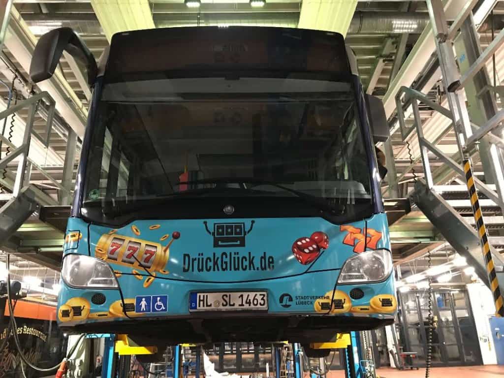 Die Webwiser GmbH und DrückGlück kooperieren bereits seit mehreren Jahren. Da die Webwiser GmbH seit kurzer Zeit auch Buswerbung anbietet, war diese Gestaltung eines eigenen Casino Busses eigentlich nur eine Frage der Zeit. Der Bus wurde an die Stadtwerke Lübeck vermittelt, zu sehen wird er im gesamten Stadtgebiet für ein Jahr sein.