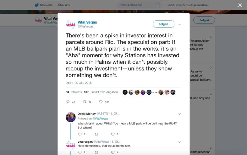 Zwei der vier großen Sportarten sind damit bereits in der Stadt vertreten. Baseball könnte die dritte Sportart werden, so dass Vegas dann nur noch auf ein eigenes Basketball-Team verzichten müsste. Aber was nicht ist, kann ja noch werden. Sollte die Stadt also tatsächlich Interesse an den unterschiedlichen Sportarten und Vereinen gefunden haben, dürfte in der Theorie um ein mögliches Baseball-Stadion tatsächlich ein Körnchen Wahrheit zu finden sein.