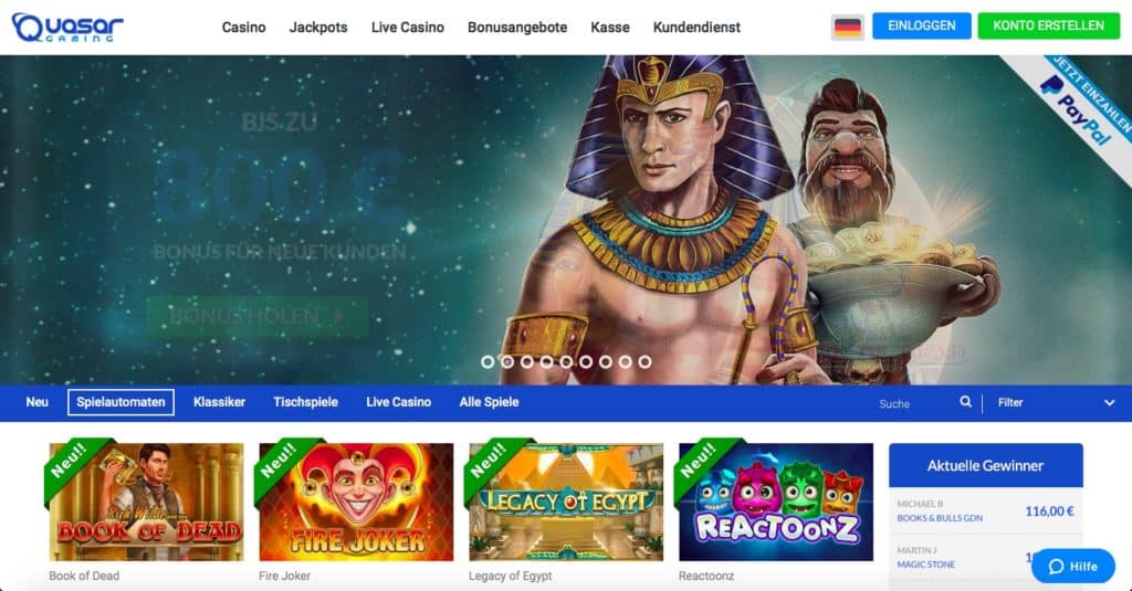 2012 hat das Quasar Gaming Casino den Online-Glücksspielmarkt für sich entdeckt und auf diesem Wege zahlreiche Erfolge feiern können. Vor allem in der Anfangszeit war das Portfolio enorm begehrt, da es sich um eines der wenigen Novoline Casinos handelte. Gespielt werden konnten hier Klassiker wie:
