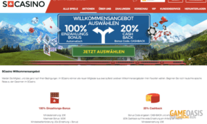 Erste Einzahlung für das SCasino Willkommenspaket tätigen: Da es kein SCasino Bonus ohne Einzahlung ist, ist eine erste Einzahlung von mindestens 20 Euro zu tätigen. Bei dem 100% Einzahlungsbonus wird der Betrag automatisch gutgeschrieben. Soll es die 20% Cashback Aktion werden, muss ein Bonuscode angegeben werden.